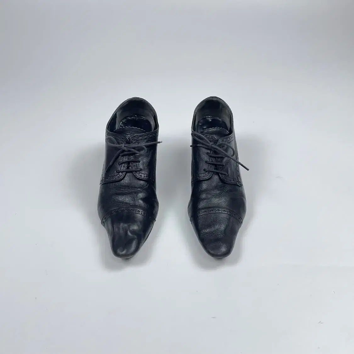 A: つま先が少しツルツルでかかとが木製で、全体的に僅かな使用感、ソールに使用感、インソールのロゴによる色褪せ、大きなダメージはない状態、オリジナルボックス付属