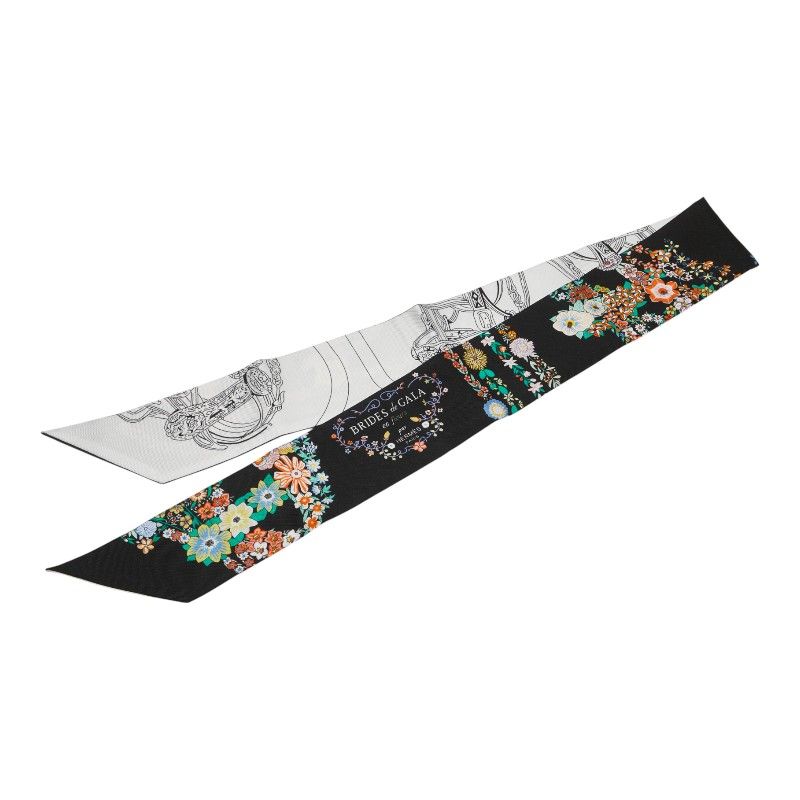 エルメス ツイリー BRIDES de GALA en Fleurs ブリッド ドゥ ガラ アン フルール ブラック ホワイト マルチ シルク レディース HERMES 1-0231203