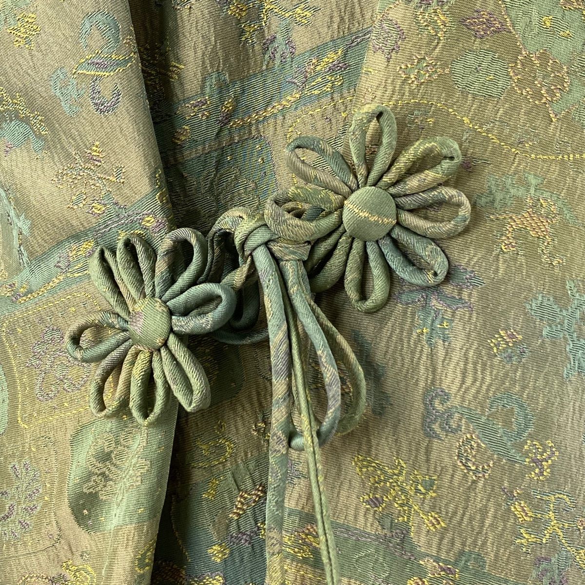 道中着 身丈128.5 cm 裄丈68.5 L 和装コート 草花草 鳥 茶緑色 正絹