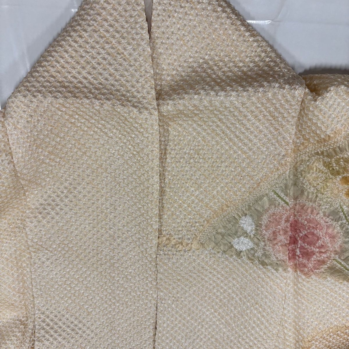 訪問着 身丈153 cm 裄丈61.5 S 袷 草花 霞 総絞り 薄オレンジ 正絹