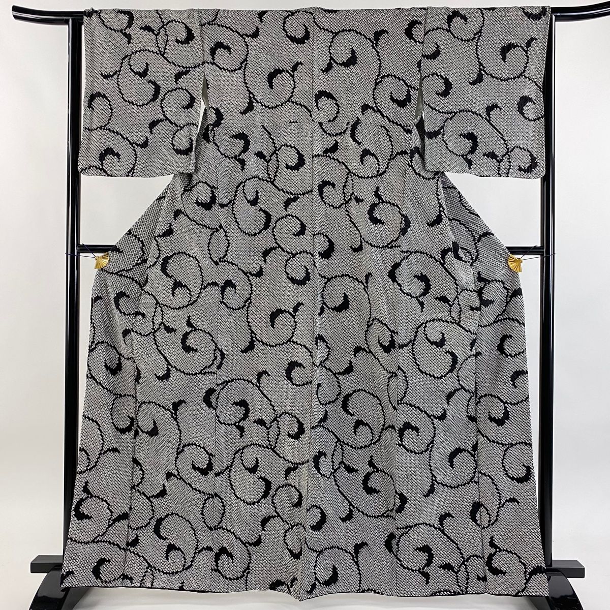小紋 身丈164.5 cm 裄丈63.5 S 袷 名古屋帯セット 唐草 総絞り 黒 正絹 秀品