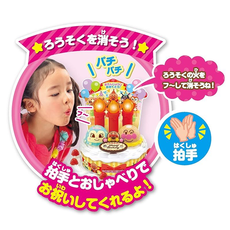 光っているろうそくに「フー」と息を吹きかけると火が消えてアンパンマンたちが拍手とおしゃべりでお祝いしてくれます。