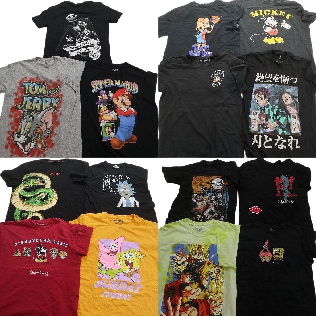 古着卸 キャラクター 半袖Tシャツ セット メンズ XS S ドラゴンボール 鬼滅の刃 ナルト トムとジェリー 古着 NC 3882