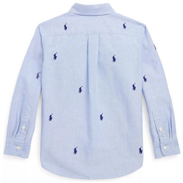 男の子用アイテム。全体にポニー刺繍をあしらった注目度バツグンのアイコニックなボタンダウンシャツ。上品さと耐久性を兼ね備えたオックスフォード生地。普段使いから特別な日のお出かけにも最適。