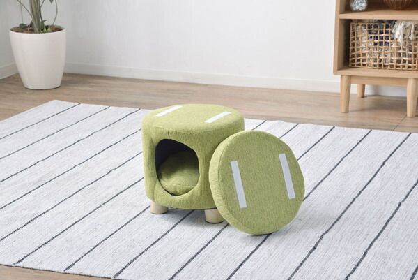 ペットがくつろげるペットハウススツール。座って一緒にくつろぐことができます。