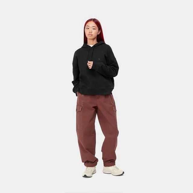 12.3オンスのコットンジャージーを起毛させ、ソフトなフリースのような裏毛。ルーズフィットでややクロップド丈、ドロップショルダーでリラックスしたスタイルです。左胸にはCarharttWIP'C'Logoの刺繍が施されています。