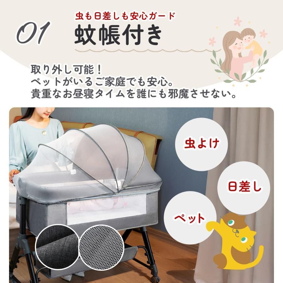 ベビーベッド 折りたたみ ミニ ベビーベット ベビー用品 蚊帳付き プレイヤード 添い寝 赤ちゃん コンパクト ベビー ゆりかご オムツ替え台 お昼寝