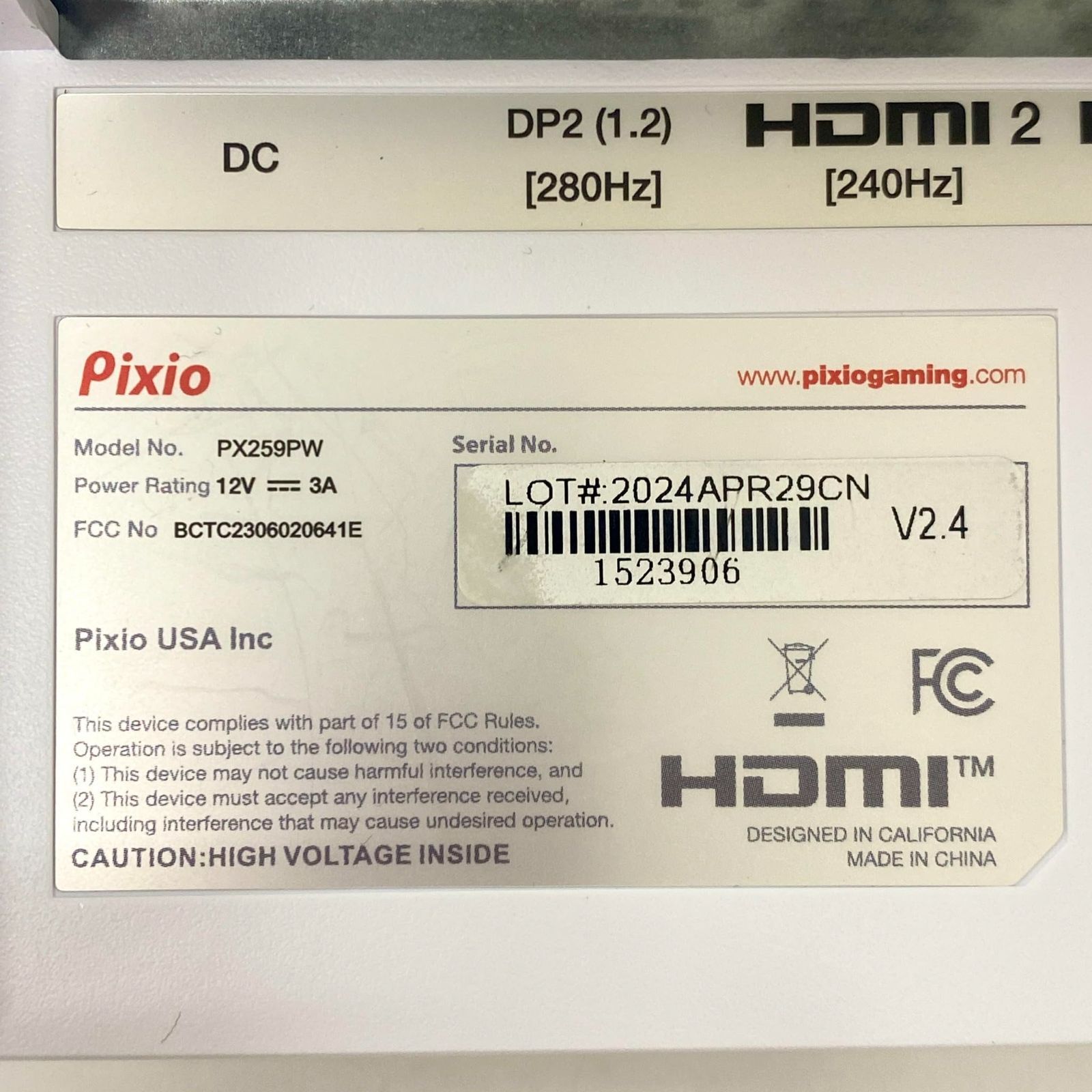 Pixio PX 259 ゲーミングモニター 24.5インチ 3603