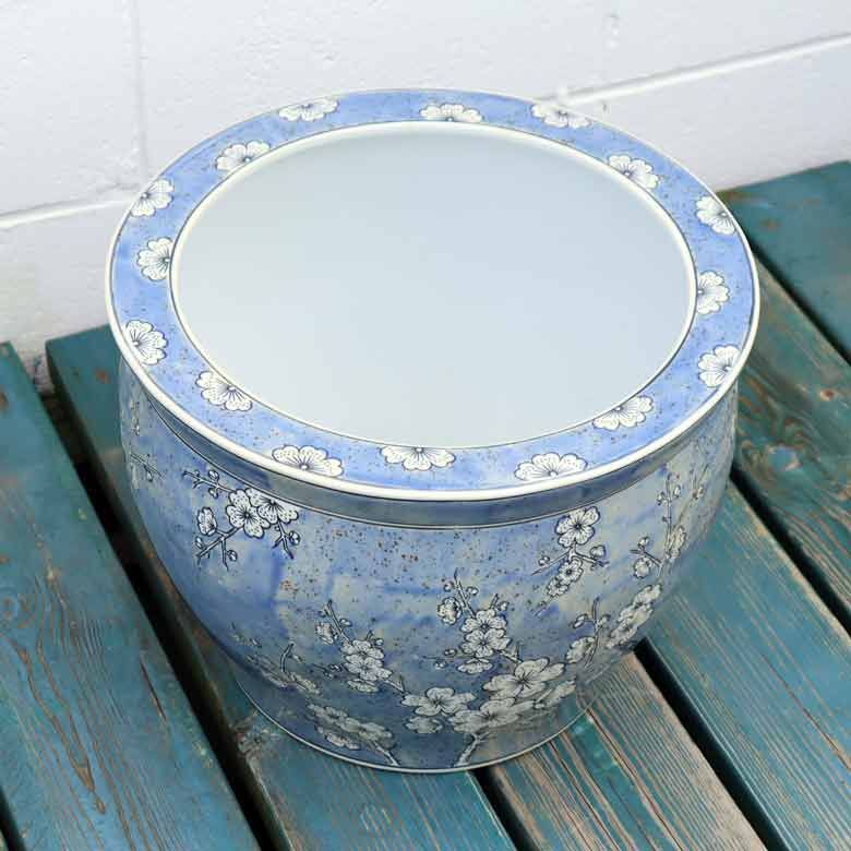 ◆和モダン風の空間づくりに最適な染付の陶器水鉢です。