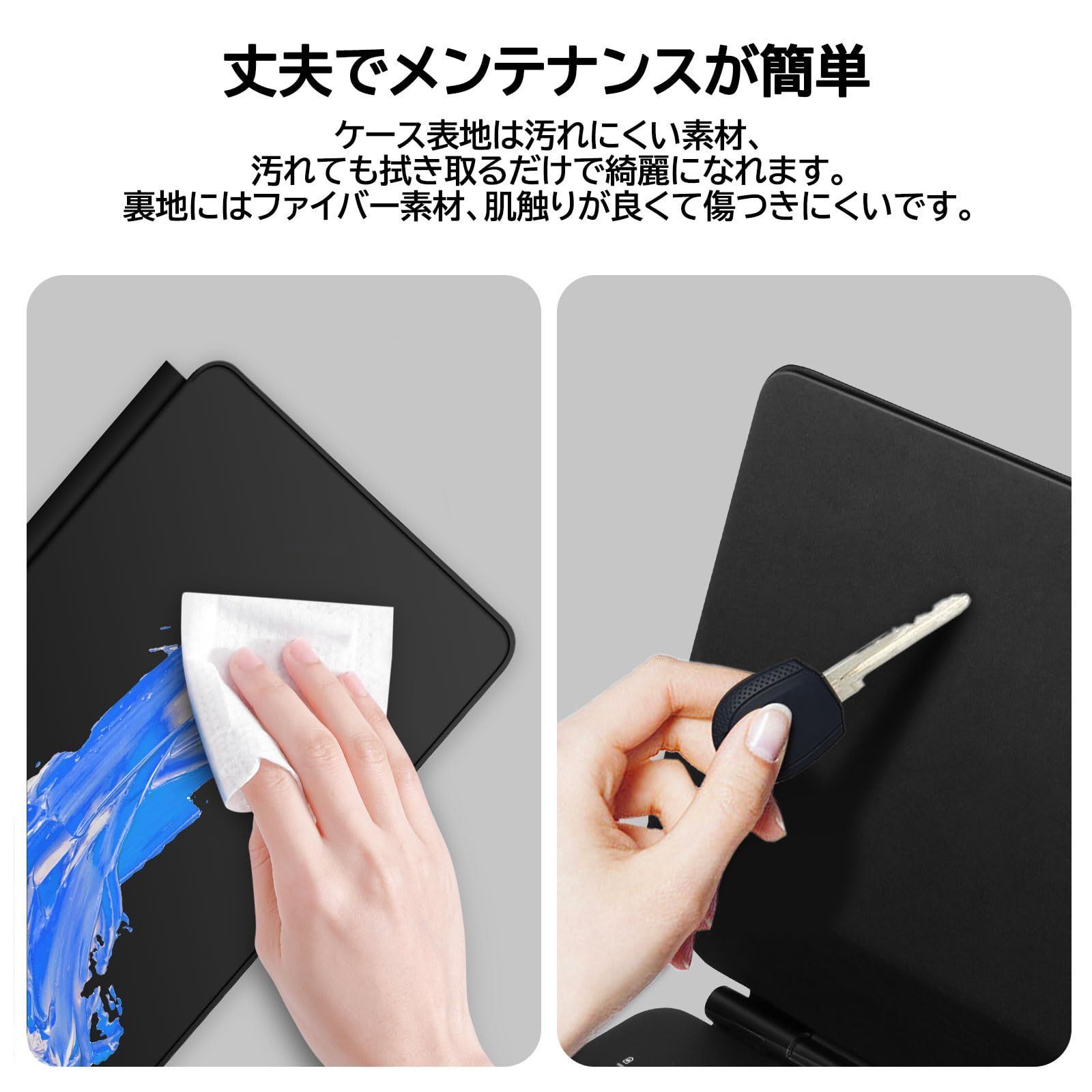 【技適認証済み&丈夫で完全保護を与える】技術基準適合証明認証済みマジックキーボードなので、商品の安 全性をできます。キーボードケースは、頑丈なキーボードベースと合成皮革のケースで構成されており、使用中、外出中、または偶然の衝撃/落下の場合にiPadに完全な保護を提供します。(ご注意:iPadは磁気でケースへ吸着するので、ケースを開閉操作の時、iPadとケースを指で押さえて一緒に動作してください。※ご注意:所属品の中に日本語説明書がない場合は是非弊社までご連絡ください。