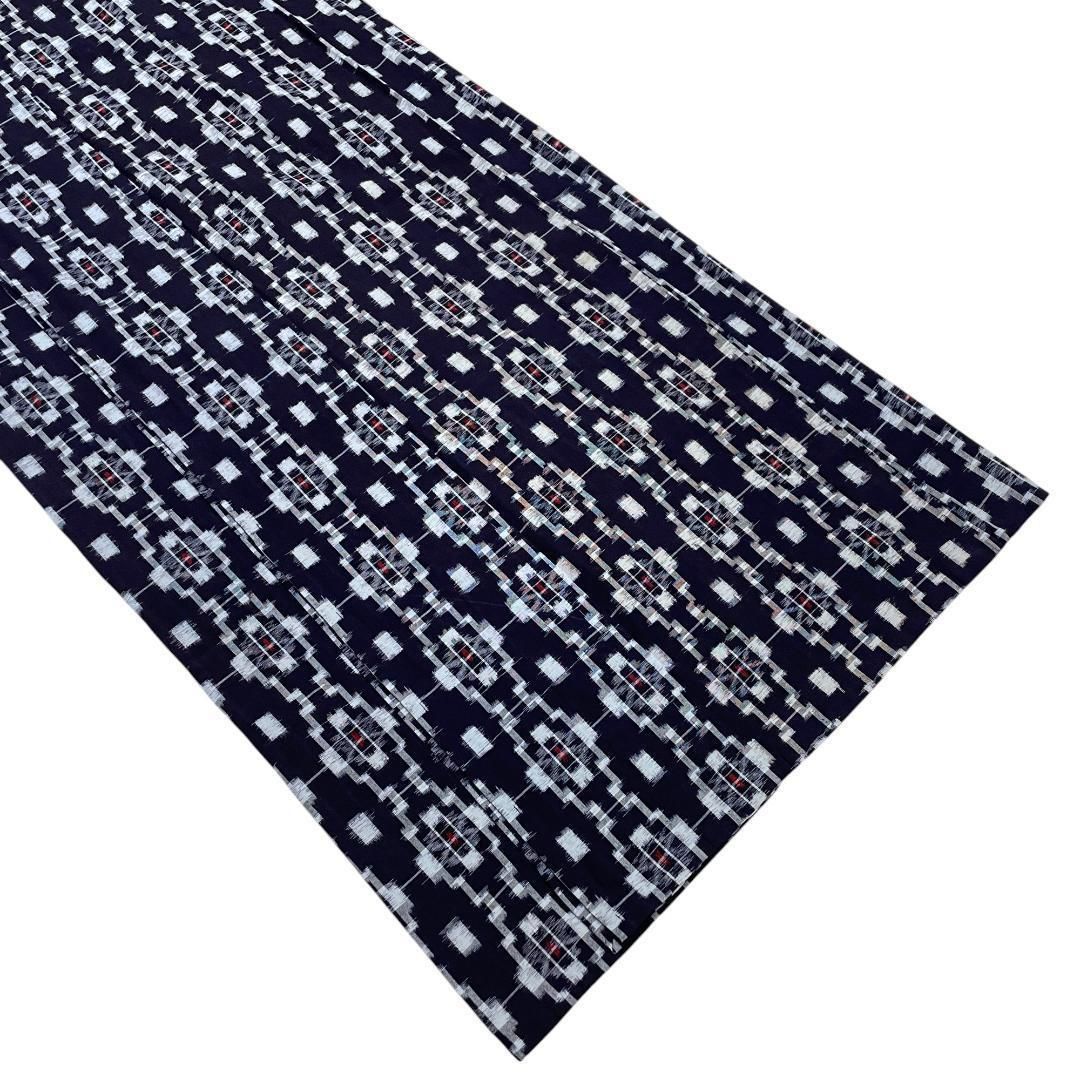 久留米絣 単衣着物 綿 幾何学柄 濃紺 ビンテージ着物 リユース品 A-2447