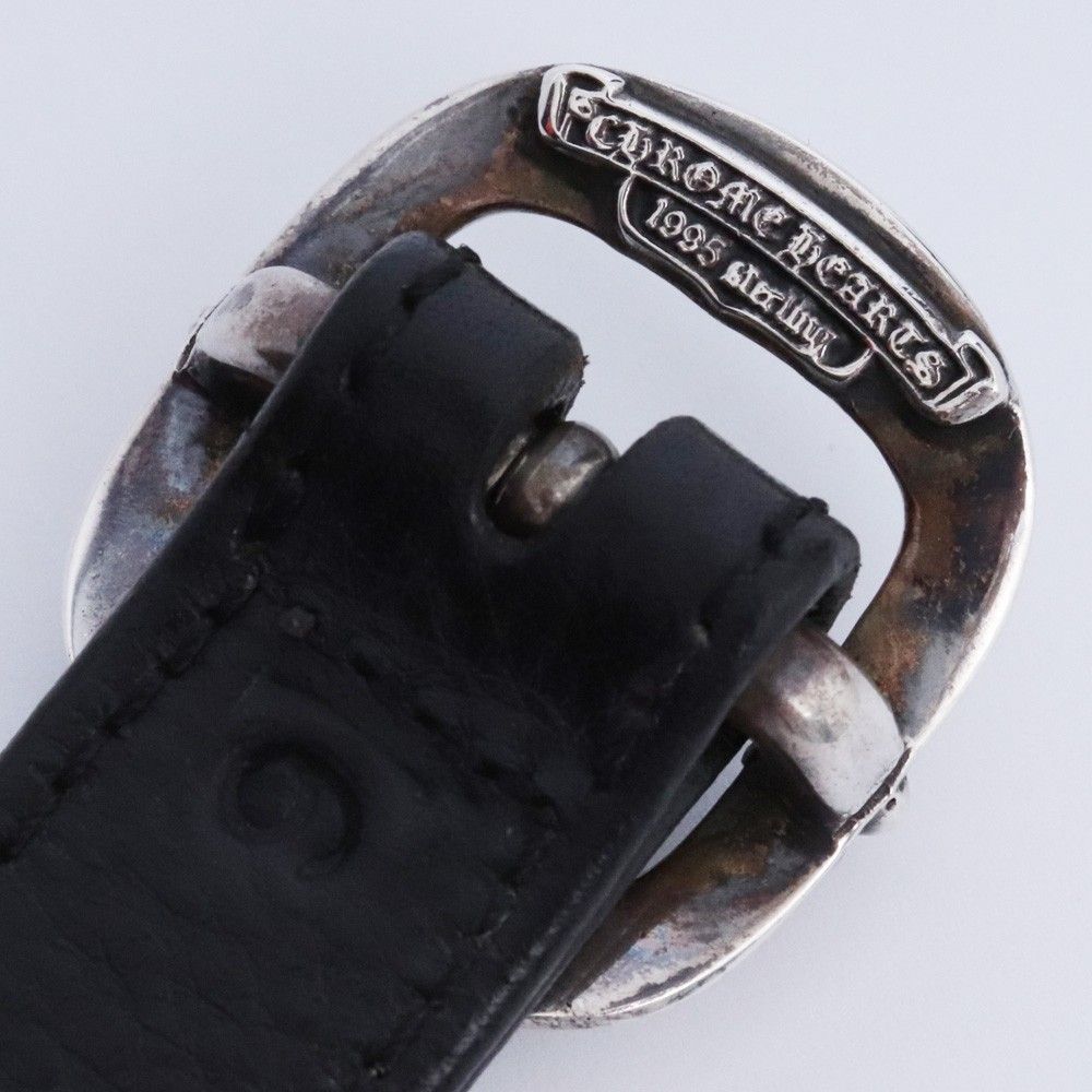 CHROME HEARTS ガンスリンガー クロスボール レザーブレスレット サイズ9 ブラック シルバー