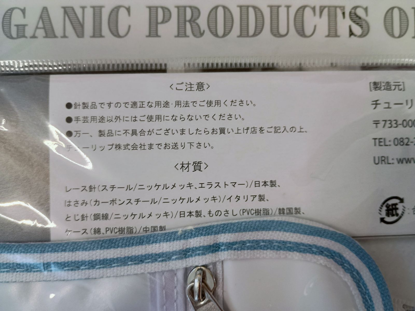【セット内容】レース針8本(No.0, No.2, No.4, No.6, No.8, No.10, No.12, No.14)、はさみ(イタリア製)、とじ針2本、ものさし、ケース