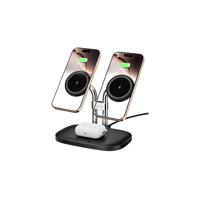 ワイヤレス充電器 iPhoneに対応、SwanScout 706M、デュアル mag-safe 充電器 iPhone 16/15/14/13/12シリーズ対応、AirPods 4/Pro 2/Pro/3対応