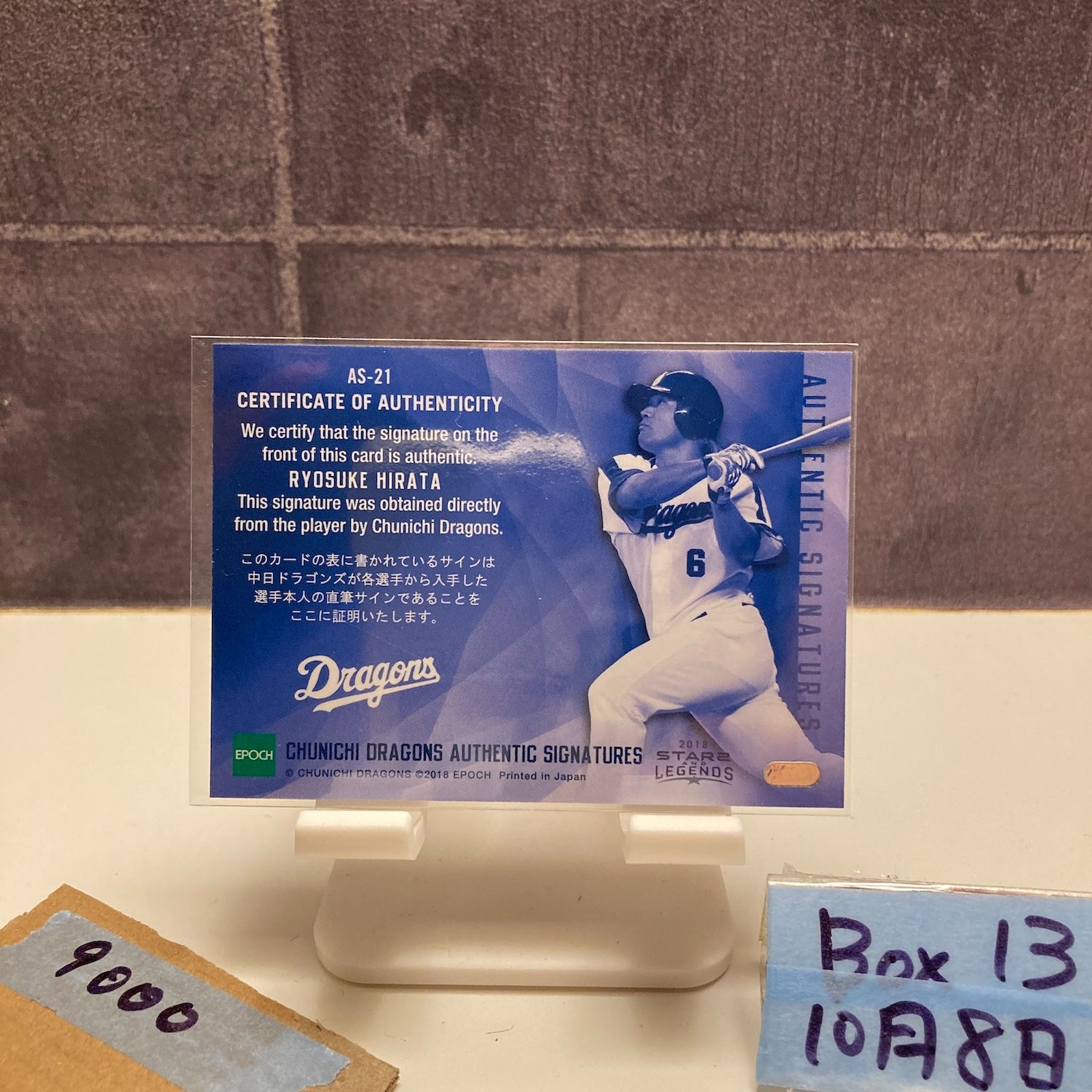 2018 Epoch Star Legends 平田良介 02 22 直筆サインカード 中日ドラゴンズ カード