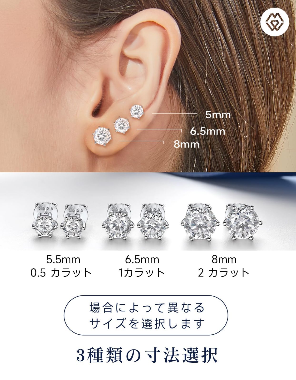 MomentWish モアサナイト ピアス レディース 1-4 カラットスタッドピアス シルバー925 一粒ダイヤモンド D VVS 1 イヤリング 結婚記念日 プレゼント 5 6.5 8 mm