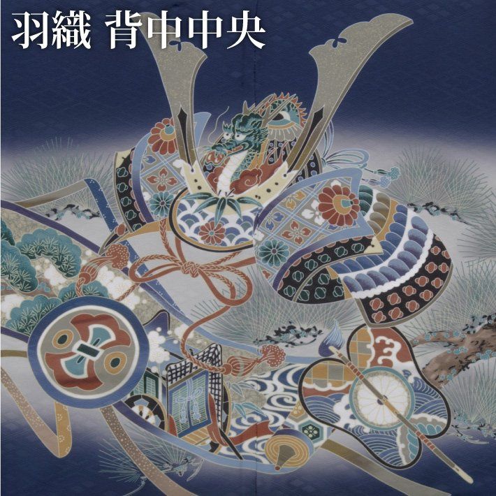 七五三 着物 男の子 五歳 13点フルセット 羽織袴セット 兜 御所車 紺 ネイビー 753 五才 5歳 5才 子供 男児 販売 totalset-00056