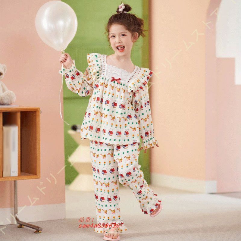 長袖 パジャマ キッズ 子供パジャマ 上下セット ガーゼパジャマ ルームウェア 部屋着 寝巻き セットアップ 寝間着 ロングパンツ 女の子 子供服 春秋 柄物 am 4 a 859636