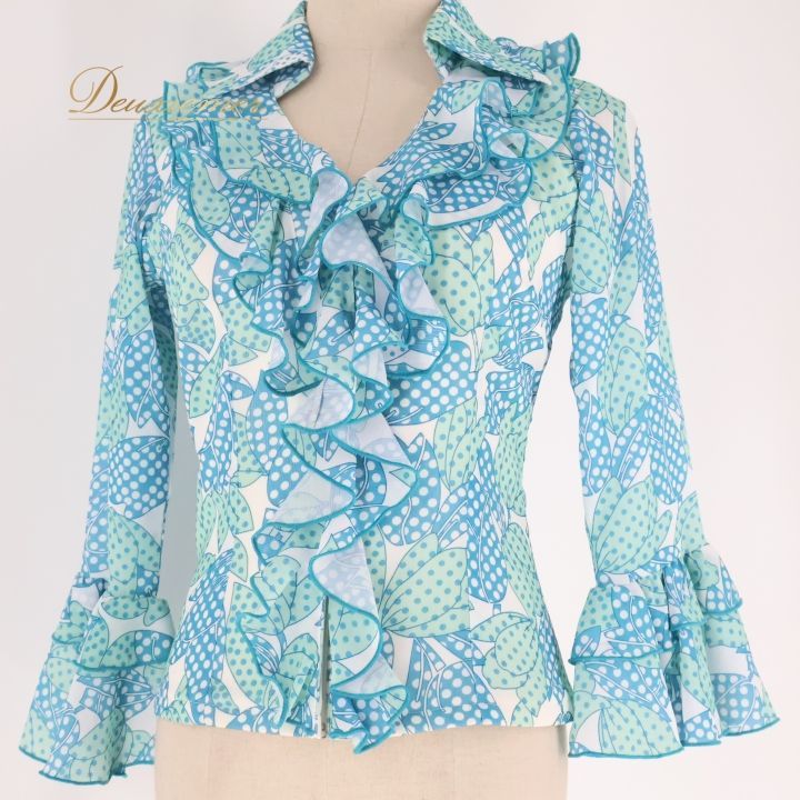 #フラメンコ #衣装 #ブラウス #トップス #ダンス衣装 #フラメンコ衣装 #カラフル #グリーンブルー #女性ファッション #ステージ衣装 #パフォーマンス #エレガント #オシャレ #ファッションスタイル #ダンススタイル #フラメンコダンス #アパレル #衣装デザイン #トルソー #ENUTSU