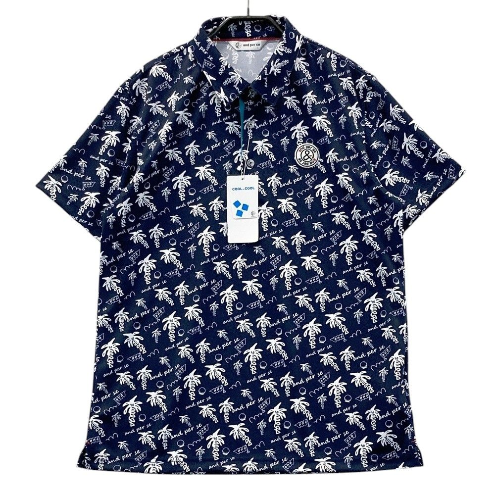 サイズ L AND PER SE アンパスィ 半袖ポロシャツ 総柄 ネイビー系 ゴルフウェア メンズ ストスト