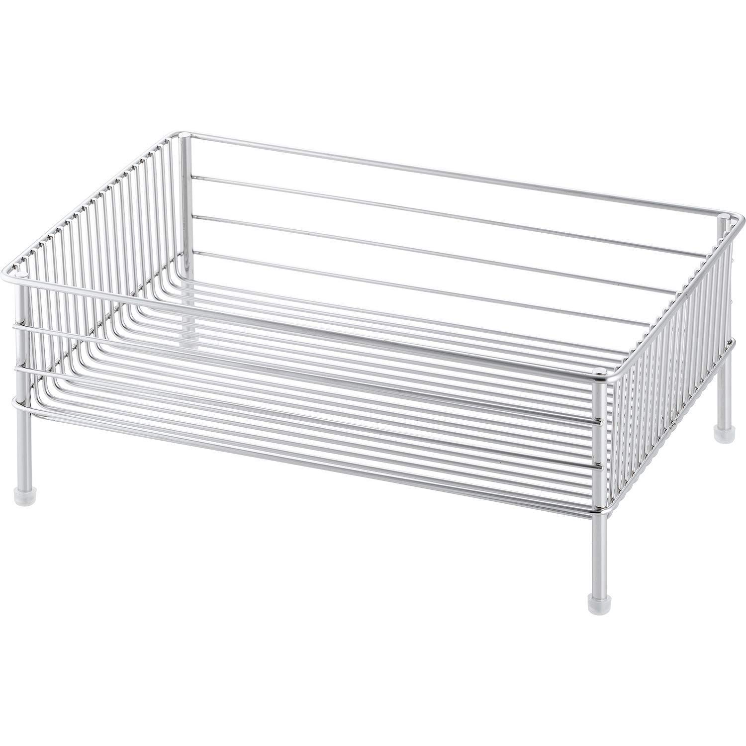 18-8ステンレス鋼を使用しています。 底に溶接部分が無いので、汚れがたまらず、清潔を保ちやすい形状です。かごの深さを浅めにする事によって、食器の出し入れがしやすくなりました。 底はワイヤーが縦にまっすぐ通っているだけのシンプルなデザインで、ワイヤーのピッチが細かく、フラットなので、皿も立てやすく、グラス等を置いた時の安定性に優れます。 LB-022 ステンレス水切りトレー小やLB-059 ステンレスポケット小などと組み合わせてご使用いただけます。