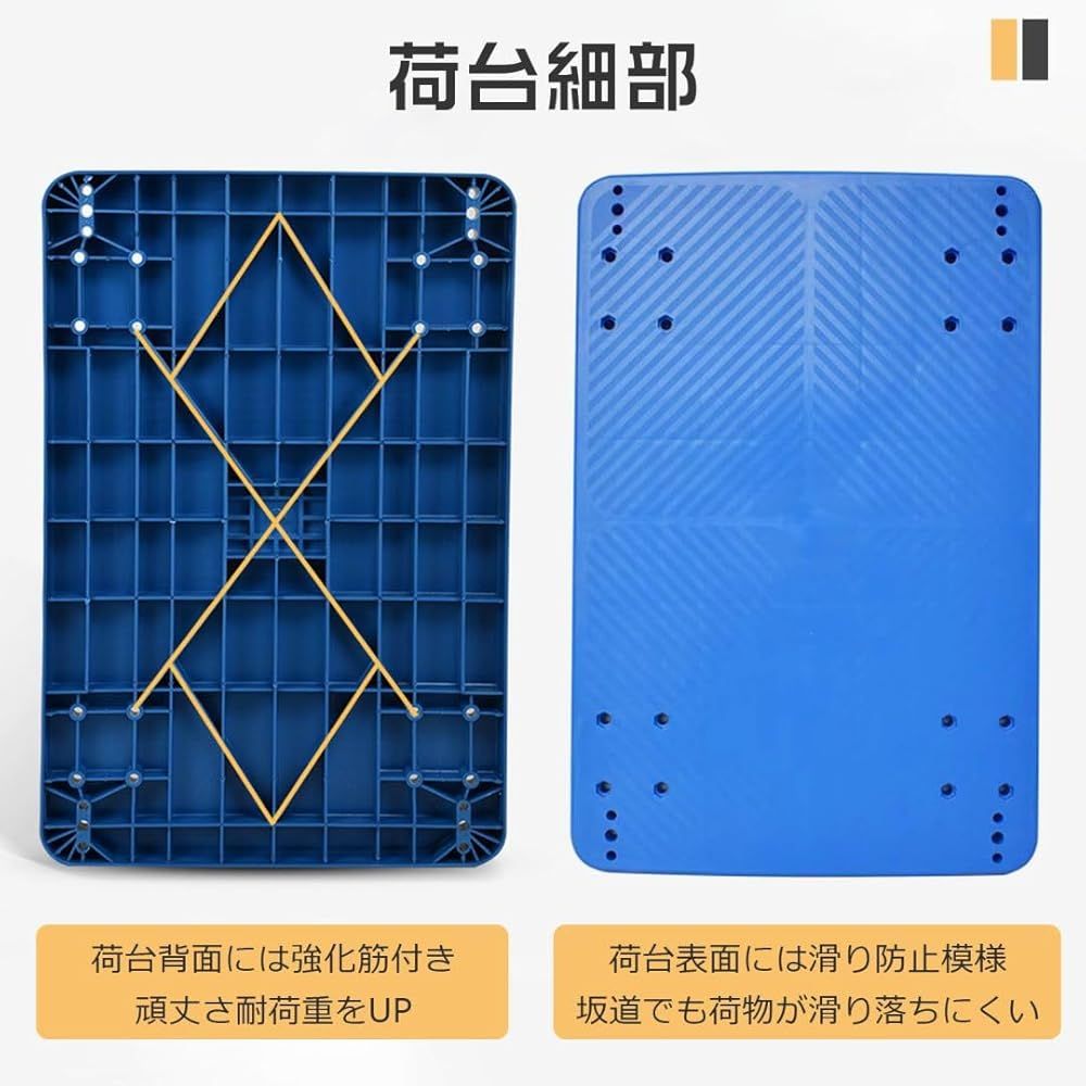 【安定で効率アップ】滑り落ちを防ぐバスケットがあります。上段前後には安定感のある滑り防止ハンドル2個付いているので、押したり引いたりして操作できます。持ち運び操作が楽になります。人間工学のデザインに基づいた設計なので、もっと快適で省力、作業効率をアップします。安心安全な角丸加工、使い勝手も抜群です。