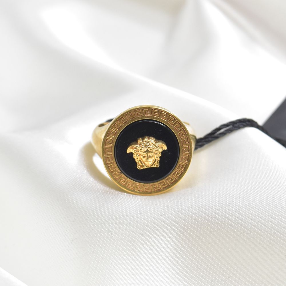 ヴェルサーチ 指輪 リング メンズ ゴールド ブラック ブランド 人気 VERSACE メデューサ グレカ ゴールド レジン メドゥーサリング ギフト プレゼント 記念日 自分へのご褒美 DG57285