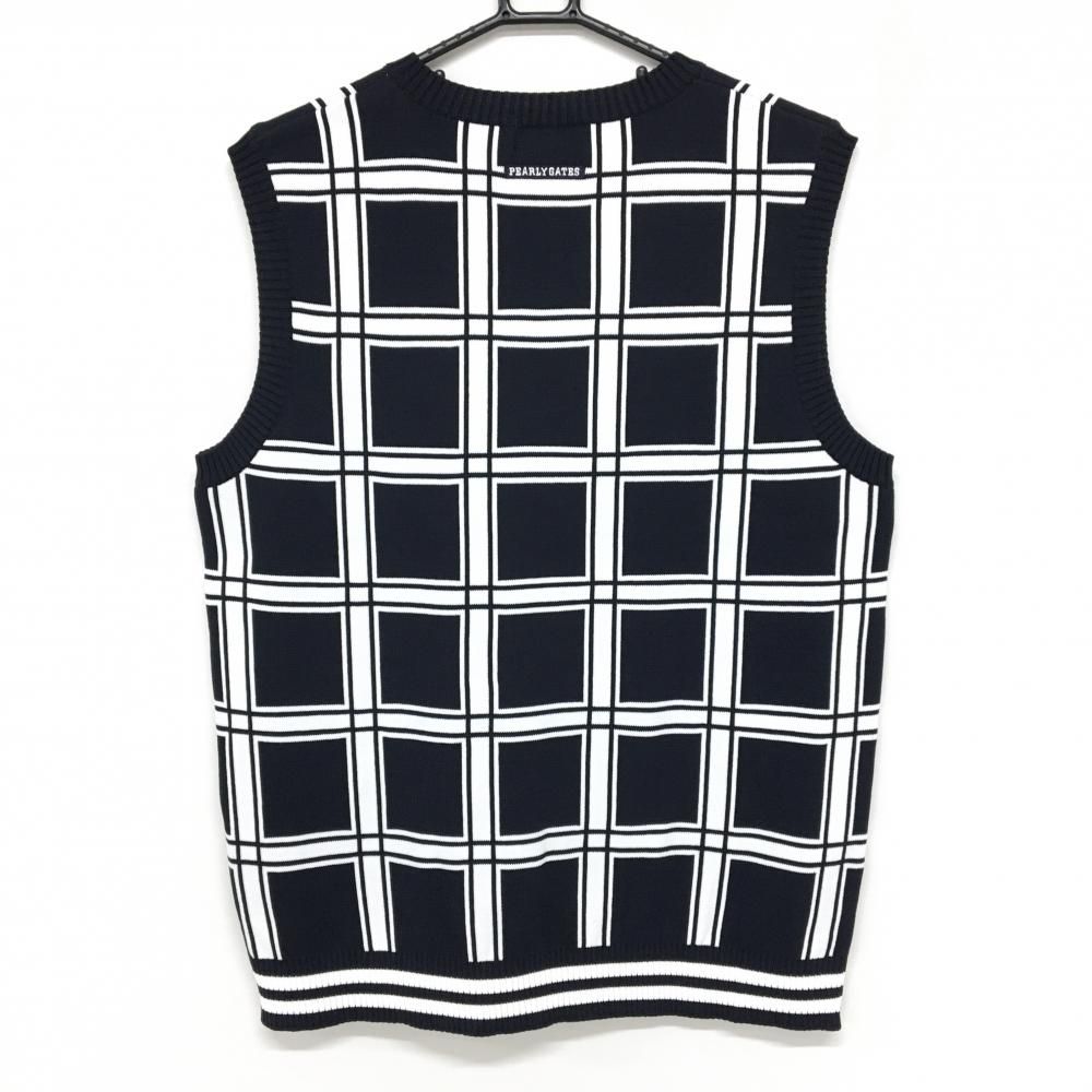 パーリーゲイツ ニットベスト ネイビー×白 Vネック 格子 メンズ 5 L ゴルフウェア PEARLY GATES