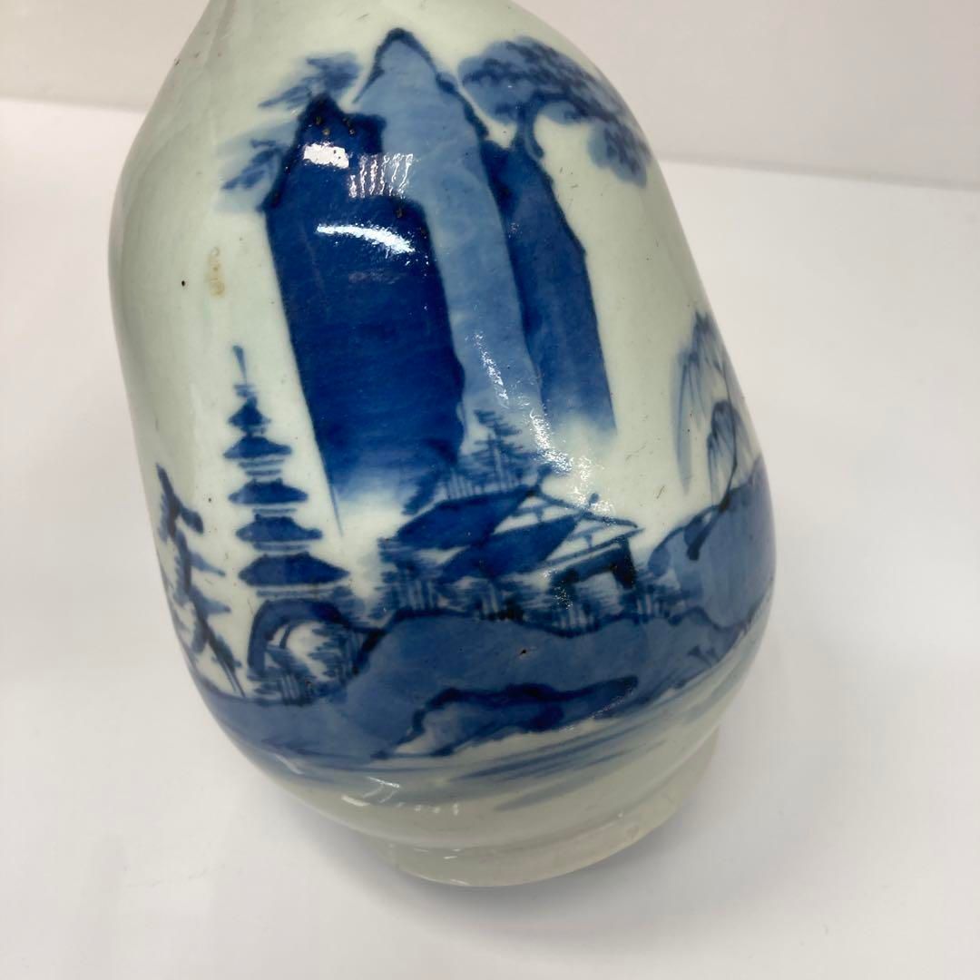 江戸中期 藍柿右衛門手 染付 風景画 徳利 トヒエカ 東さ6 0604