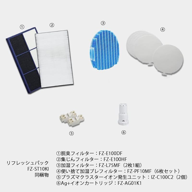 シャープ 空気清浄機 KI 100用 消耗品リフレッシュパック FZ ST 10 脱臭フィルター E 100 DF 集じんフィルター HF 加湿フィルター L 75 MF 使い捨て加湿プレフィルター F 0