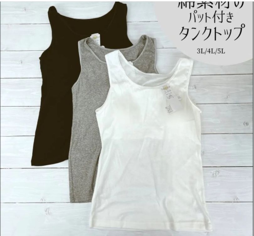 おまとめ商品 大きいサイズ ブラなしで着られるパット付きタンクトップ うれしい本体綿 でお肌に優しい 16036 D 4 L×6 レディース インナー ル ソレイユ