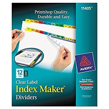 AveryインデックスメーカーPunchedクリアラベルタブDivider 12 xタブ空白 12タブ S セット 8 5 Amp Quot X 11