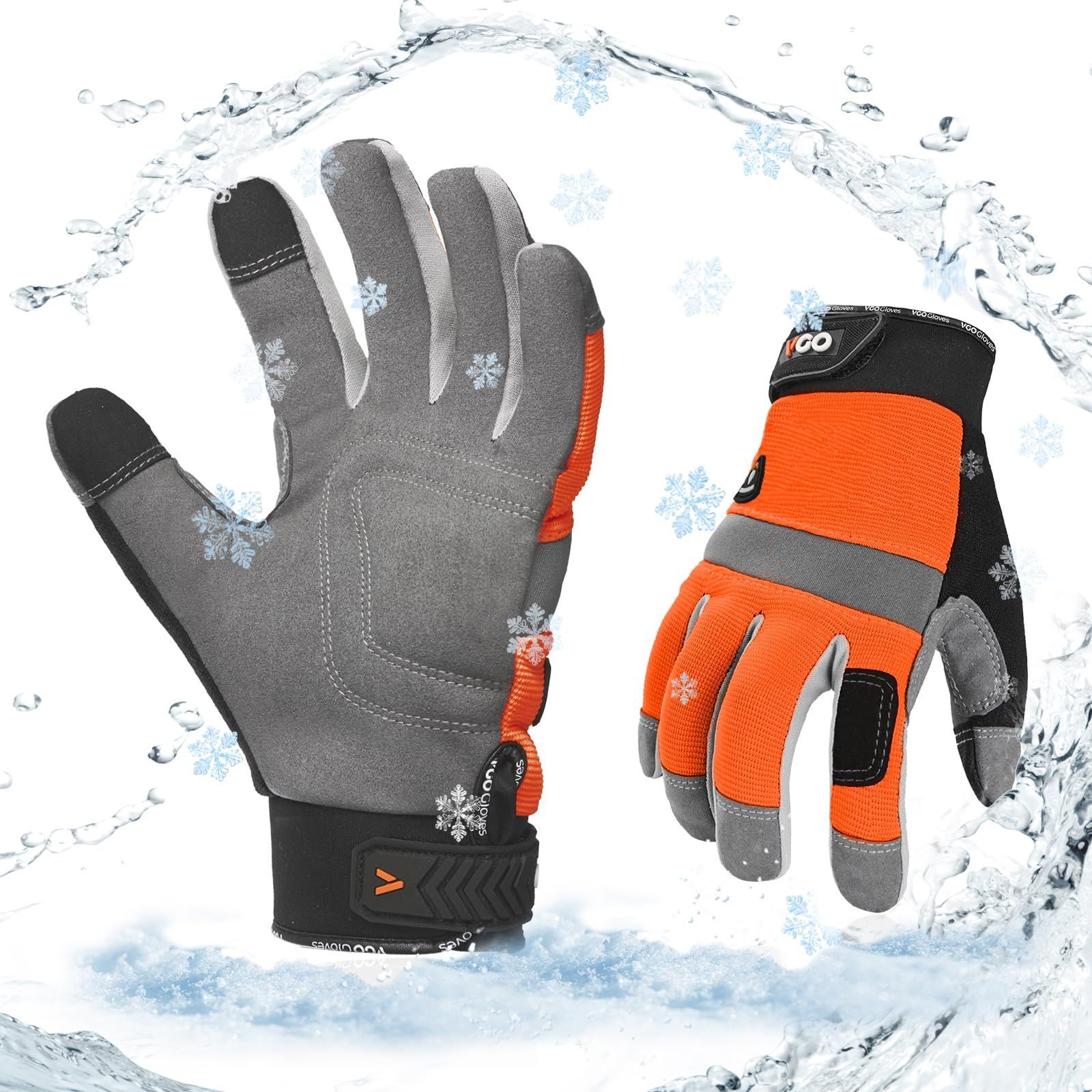 保温 冬厚手 オレンジL アウトドア 作業用手袋 低温防水 0℃防寒 Vgo
