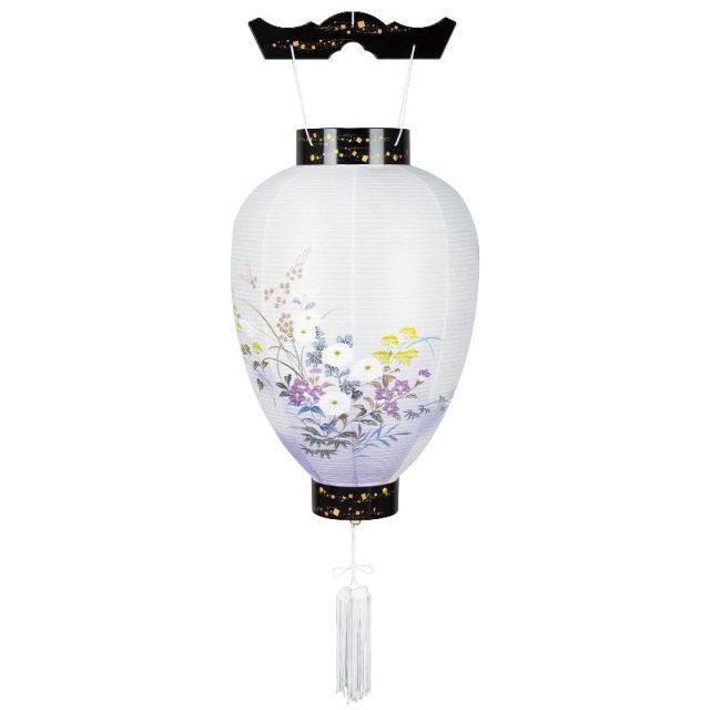 盆提灯 八女提灯 吊り提灯 壺型 蒔絵絵入 長さ78 cm P 19 8103 00200 ロウソク式 初盆 お盆