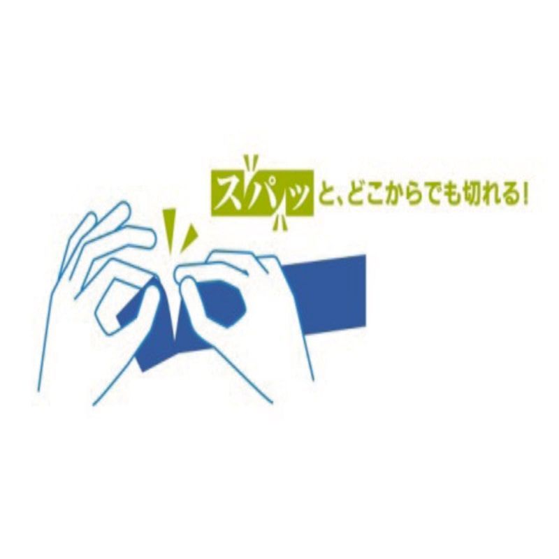 一度貼り付けると剥がした際に基材破壊がおきて剥がしたことがわかります。手で切れるようにカットが入っています。(テープカッターでも切れます。)両サイド各7mmずつノープリントゾーンがあります。ここは触っても青いテープが付着しません。