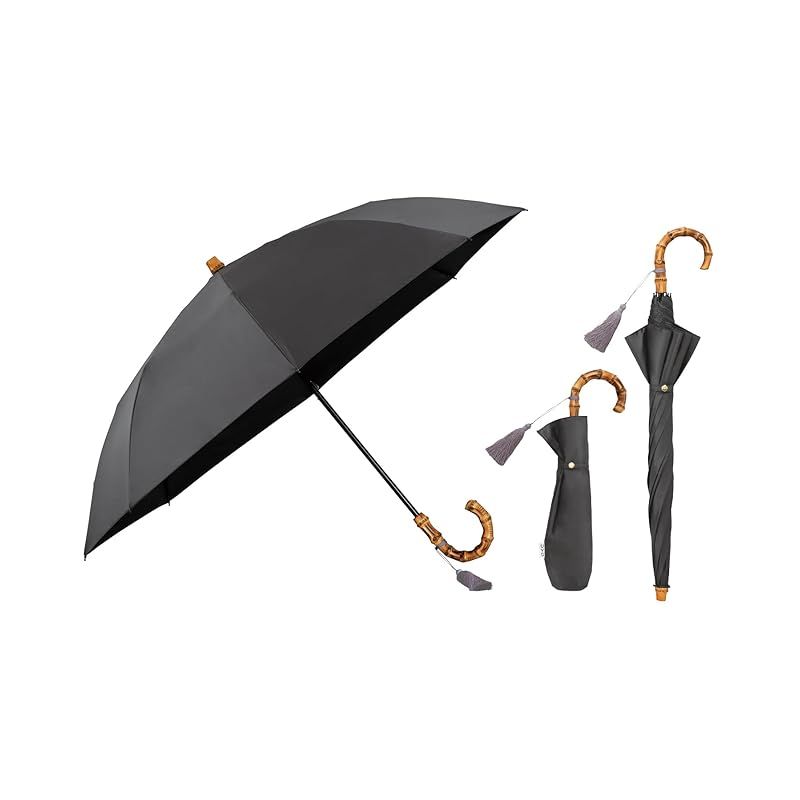 Wpc. 最強の日傘 UVO ウーボ 折りたたみ傘 2段 無地タッセル ブラック 遮光率&UVカット率 UPF 50 遮熱 晴雨兼用 cm レディース 長傘としても使える 2 way バンブー おしゃれ F-008 1