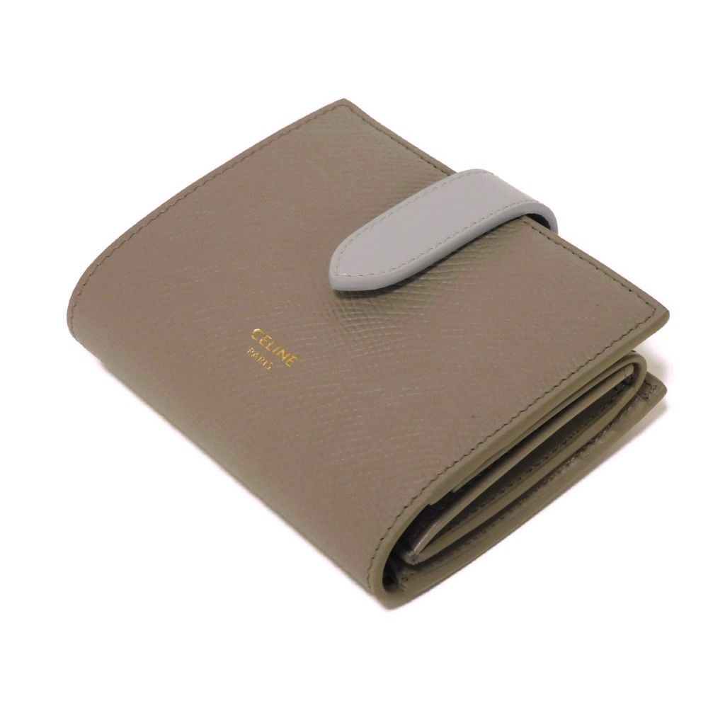 CELINE セリーヌ スモール ストラップ ウォレット 箔押し グレイン スムース カーフ ペブル ミネラル グレー ブルー 札入れ カードケース コインケース 新ロゴ 二つ折り財布 .10 PI