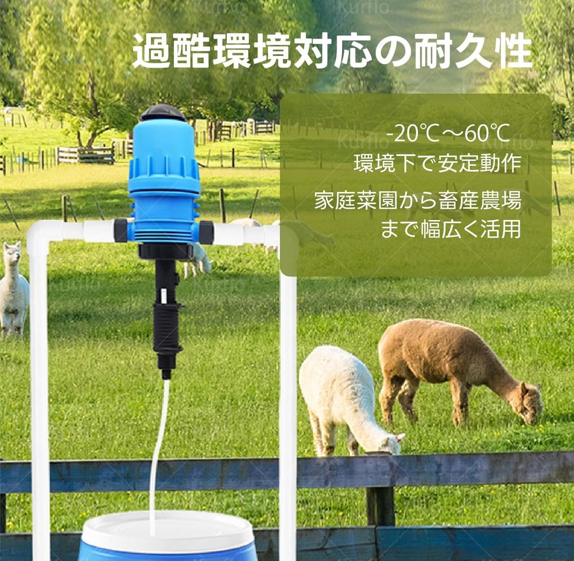 過酷環境対応の耐久性:耐候性素材を採用した液肥混入器は、-20℃~60℃の環境下で安定動作。家庭菜園から畜産農場まで、多様な現場で肥料インジェクターの高い信頼性を発揮します。