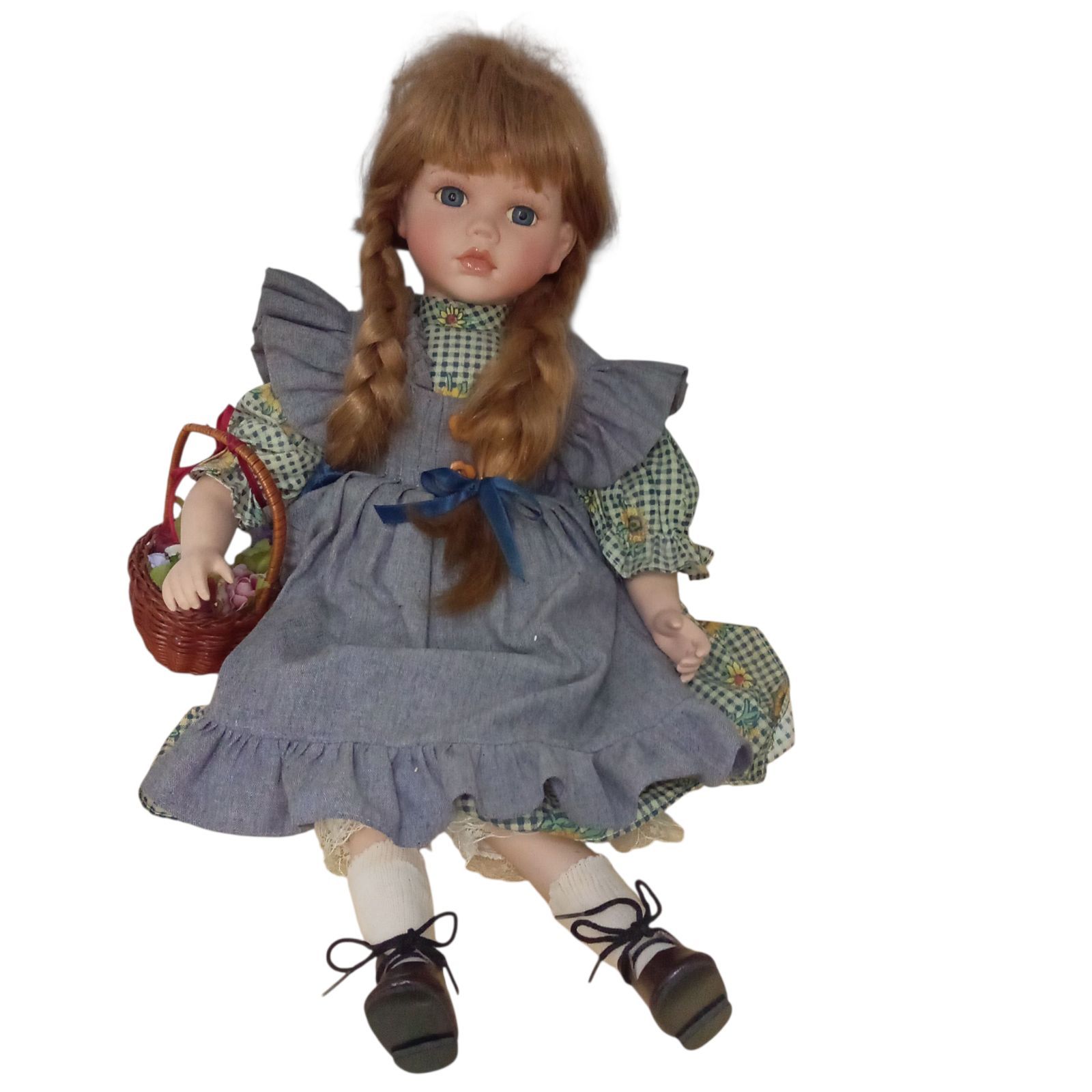 ビスクドール アンティークドール ペアの人形 陶器の人形 花かご付き