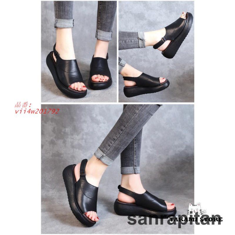 サンダル 本牛革 柔らかい ベルクロ レディース 厚底 ウェッジソー 歩きやすい コンフォート 通勤 ストラップ 靴 夏美脚 ウェッジ