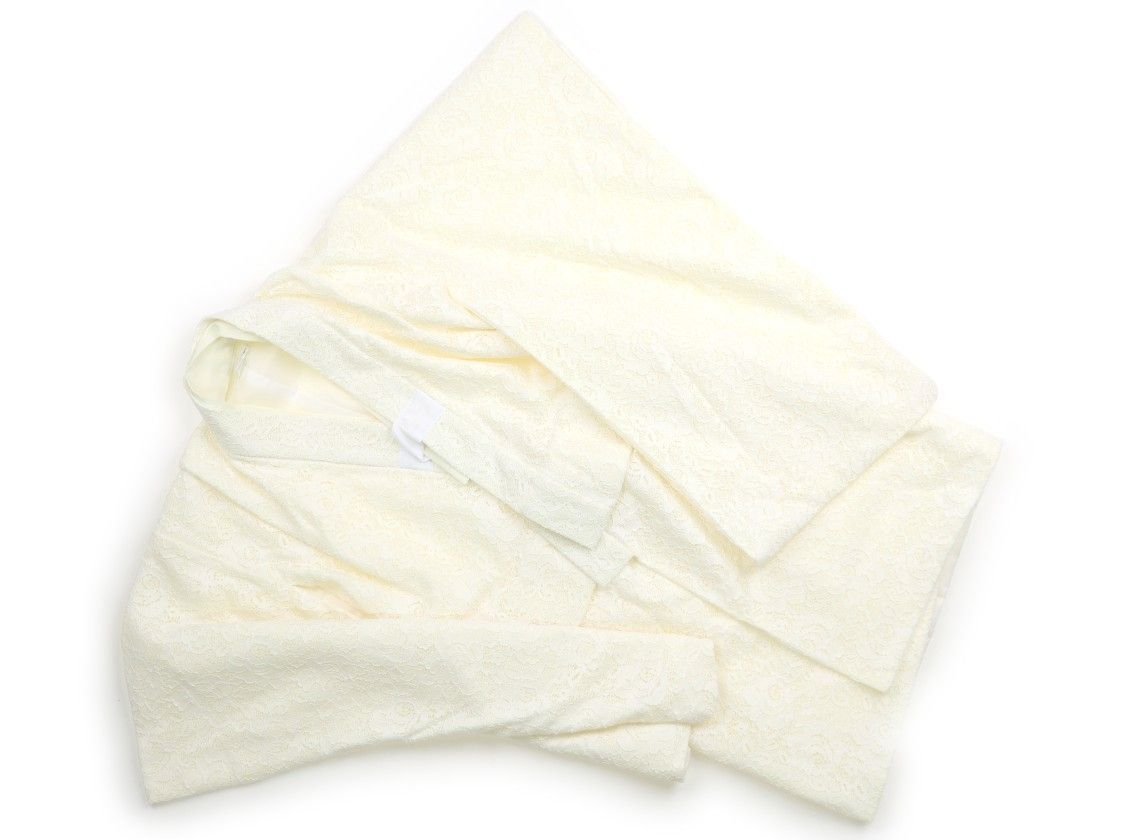 七五三用着物、三点セット。テクニックいらずの簡単着付け。長襦袢→刺繍半襟縫い付け済み。薄手綿地。簡易腰ひも縫い付け。着物→中綿入り。レース表地で袷。伊達襟縫付け。簡易腰ひも縫い付け。被布を着ますので帯はありません。被布→着物と同素材スナップどめ。使用感あまりない美品です。SNS紹介アイテム。