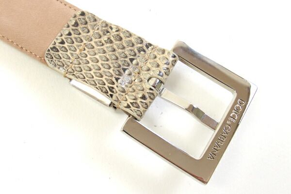 ドルチェ&ガッバーナベルトベージュパイソン型押しレザー80cm新品ファッションアパレルD&GロゴビジネスDOLCE&GABBANA