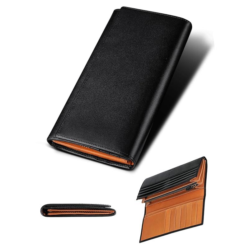 商品名:[ファブリツィオ] 財布 メンズ レディース 長財布 2つ折り マチ付き 小銭入れ 薄い 大容量 カード21枚 使いやすい イタリアン レザー 一流の革職人が作る 本革 YKKファスナー (ブラック)