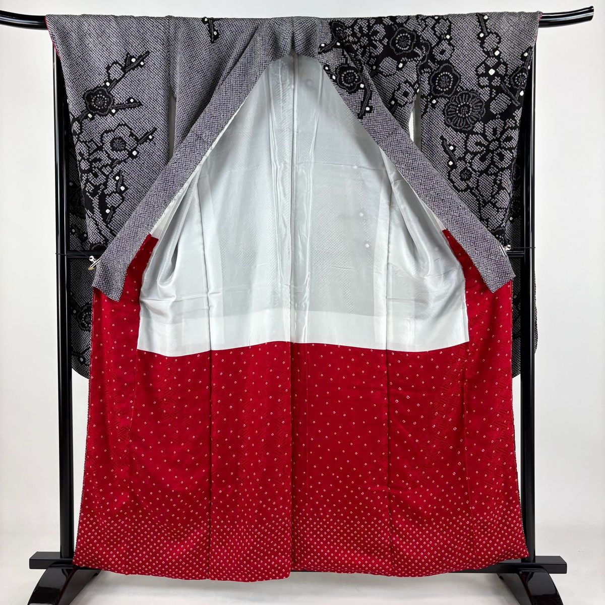 振袖 身丈159 cm 裄丈68 L 袷 袋帯フルセット 梅 総絞り 黒 正絹