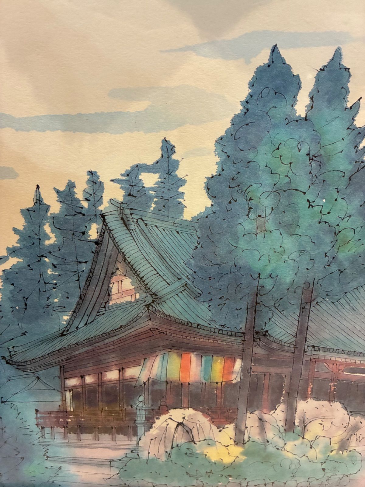 印刷品 延暦寺 大講堂 平山郁夫作 工芸画 佐川急便藏 額装 額入り