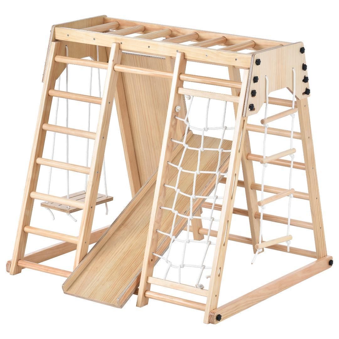 ジャングルジム 天然木 すべり台 滑り台 屋内 室内用 室内遊具 キッズ 子供 yew 2
