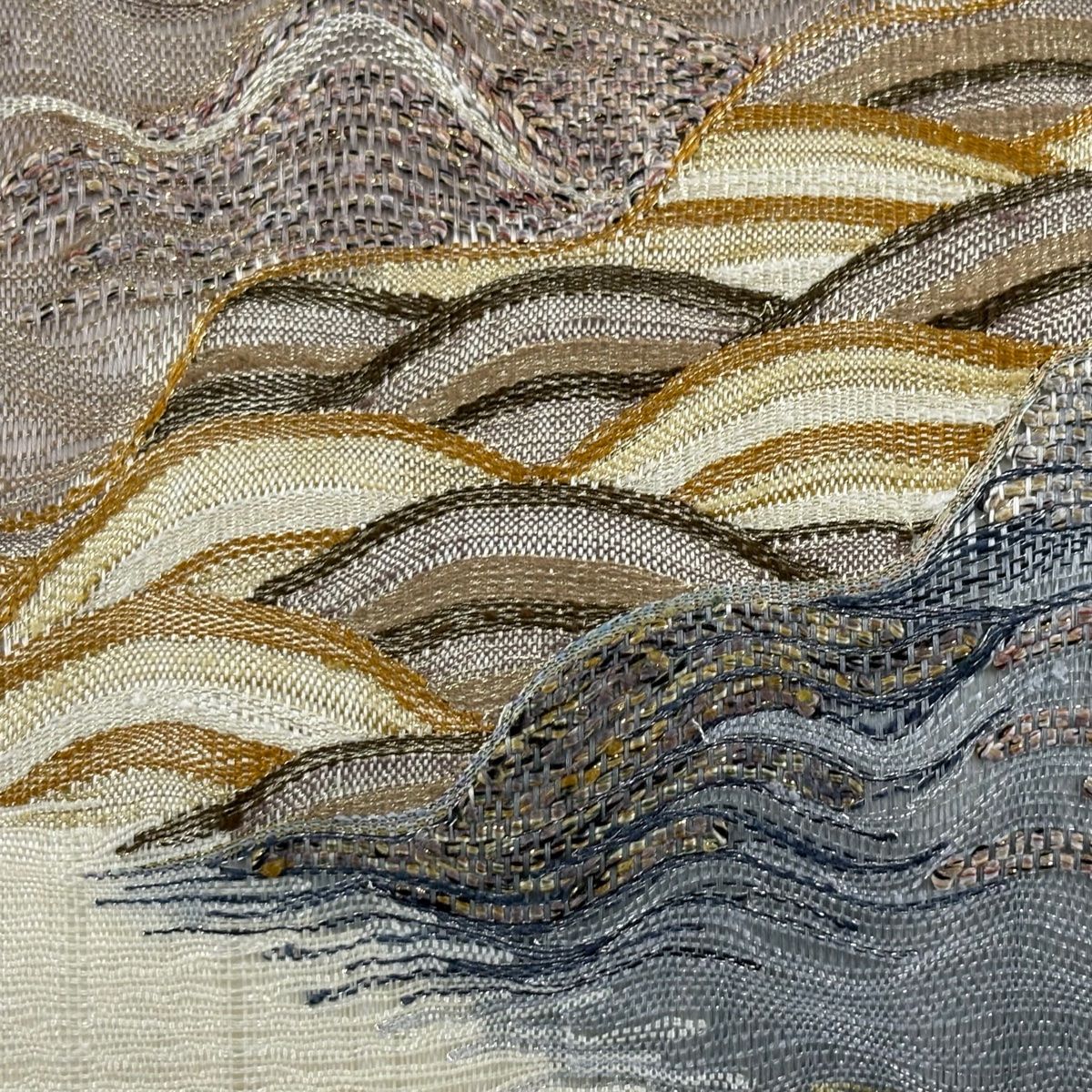 袋帯 波 霞 金糸 ベージュ 六通 正絹