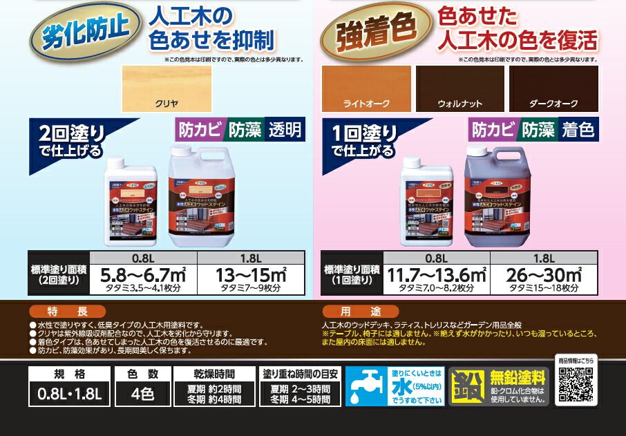 アサヒペン 水性人工木ウッドステイン 1 8 L クリヤ