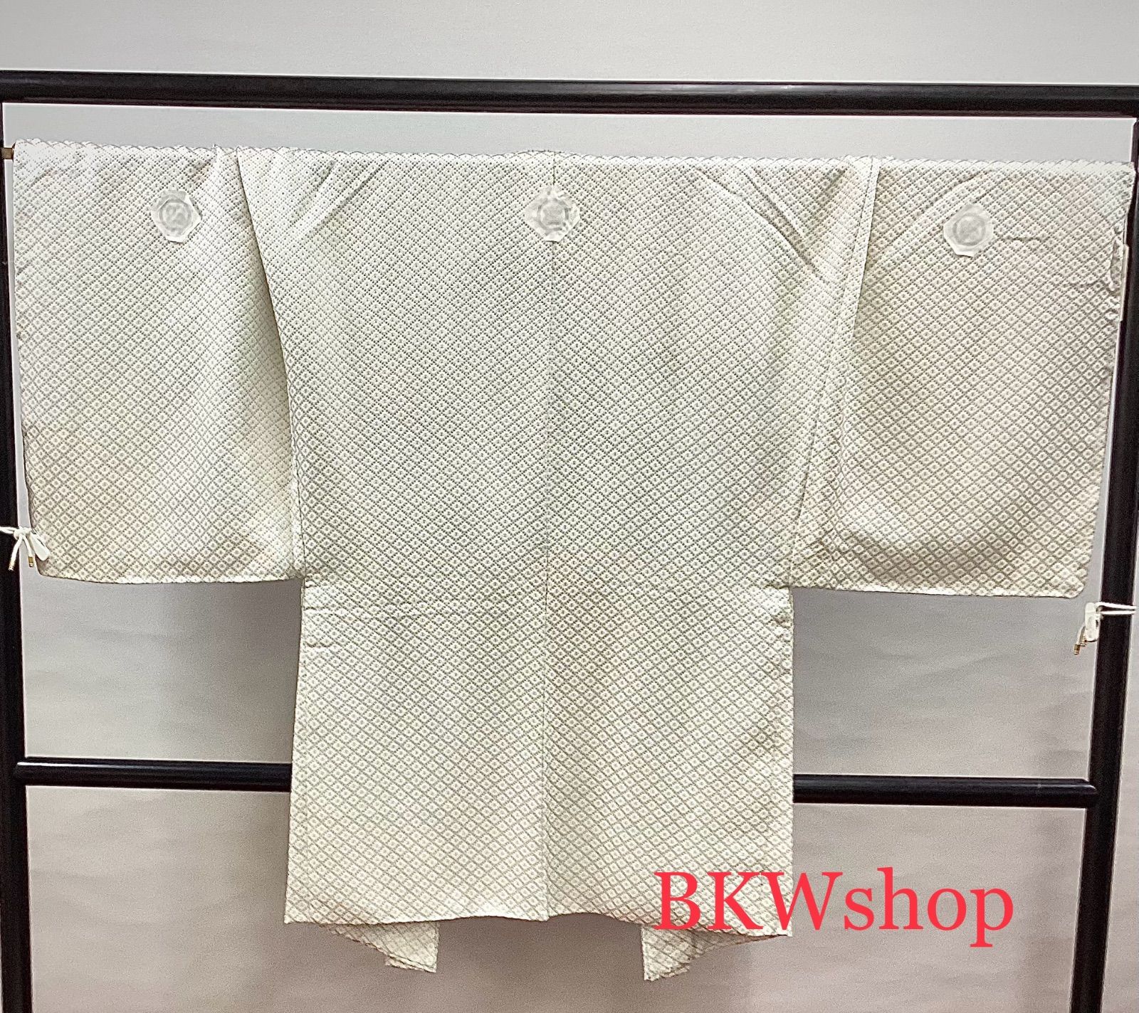 正絹 羽織 着物 刺子生地 2.55寸 177 cm~ 2点セット 丸に違い鷹の羽 紋付 成人式 結婚式 新郎様 仲人 男着物 催事 式典 お祭り 白 刺し子模様 入学式
