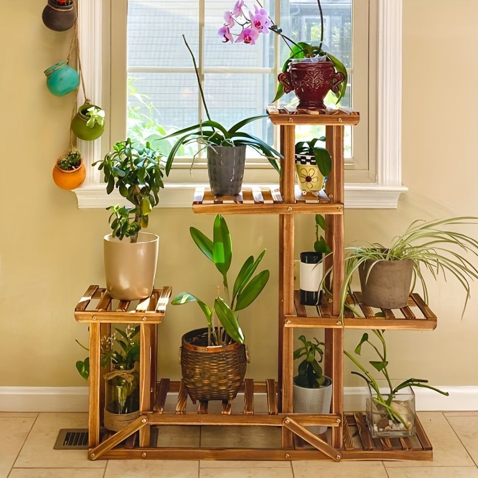 限られたスペースでも、立体的に美しく飾れる5段のフラワースタンド。軽量なのに頑丈な木製設計で、盆栽や観葉植物も安心。